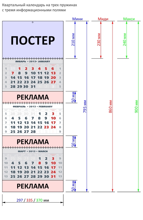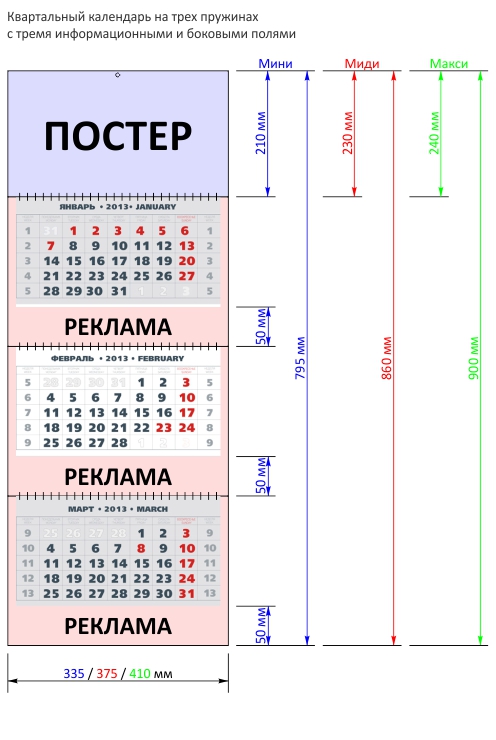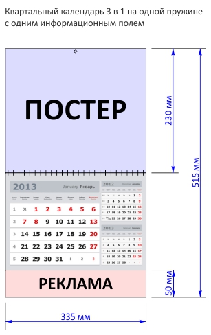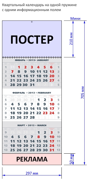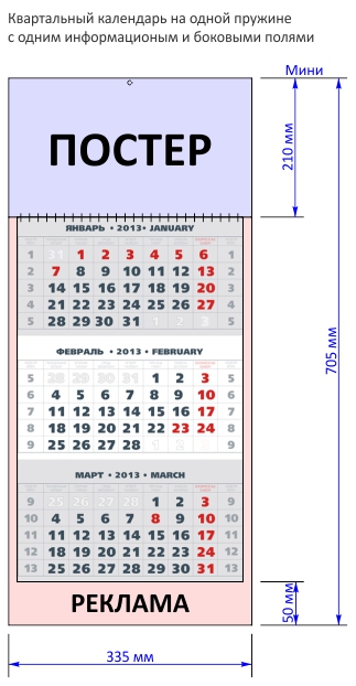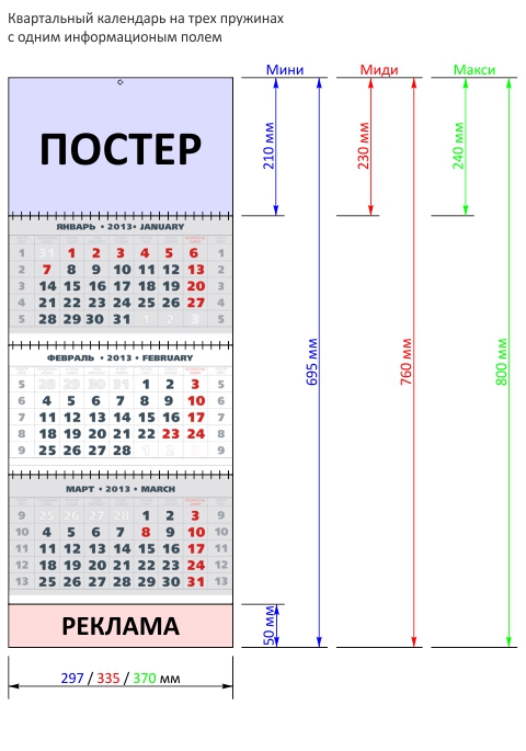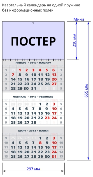 (одна, четыре, металлик) и дизайну календарной сетки.